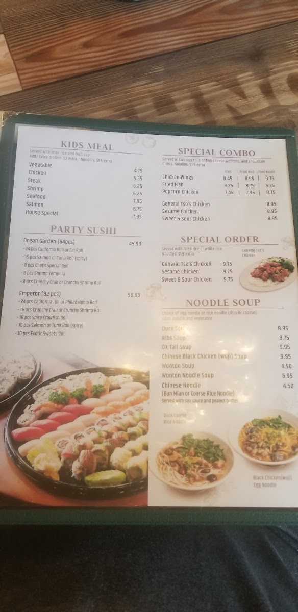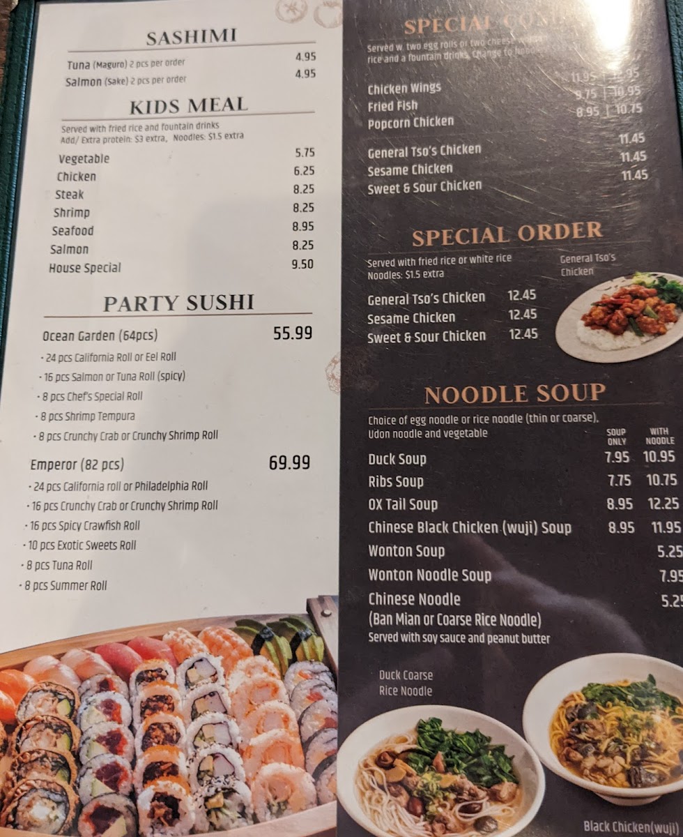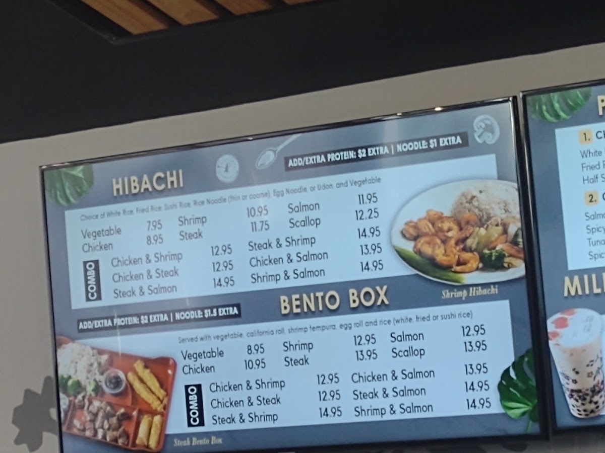 Step 1: Choose one item from the section below: Fried Rice, Noodles or Hibachi Step 2: Choose one item from the side order Fried Dumplings (4), Egg Roll (2), Wings (2), Shrimp Tempura (Imported)(2), or Cheese Wonton (2). Add 1 Sushi roll for an extra charge.