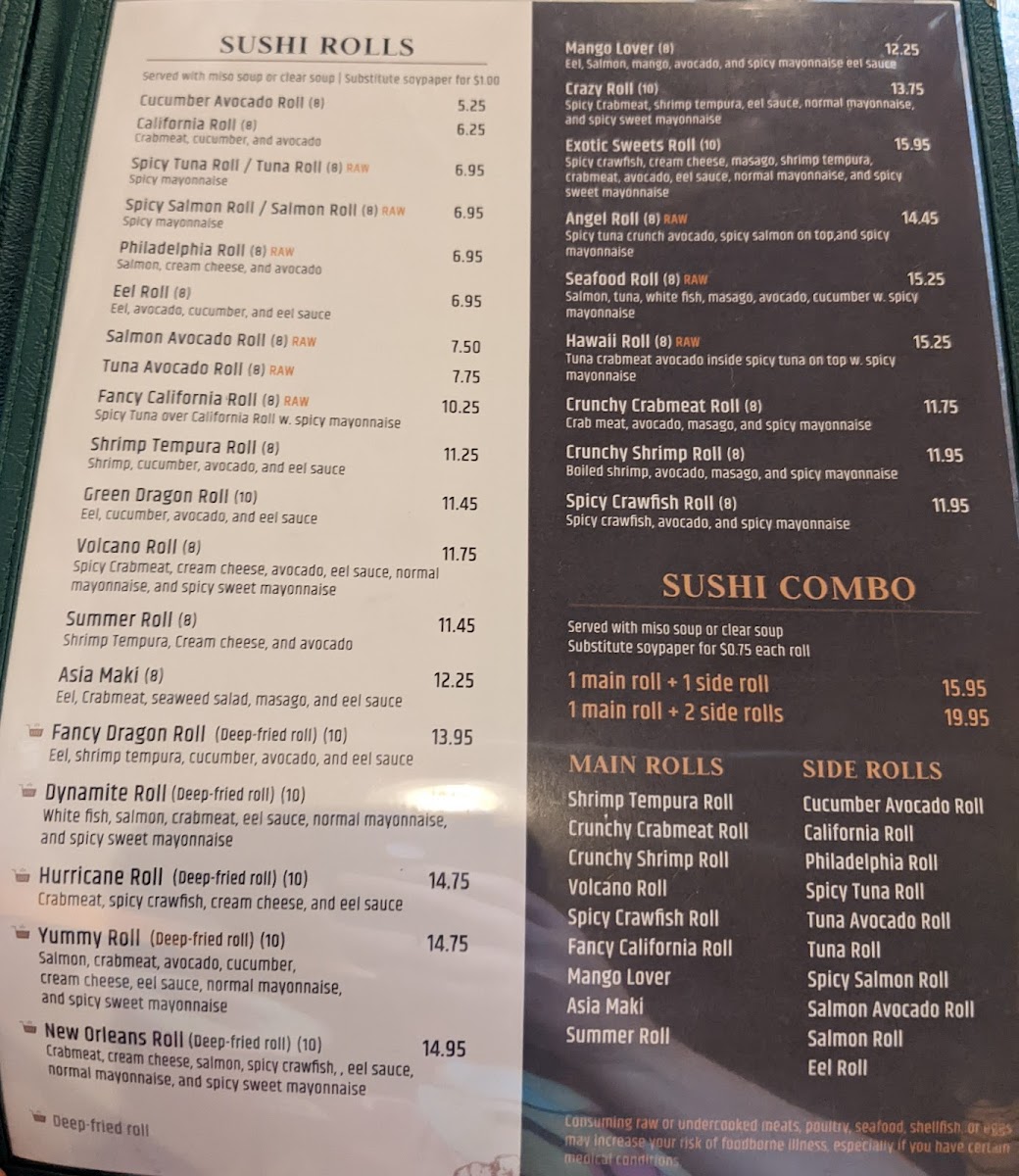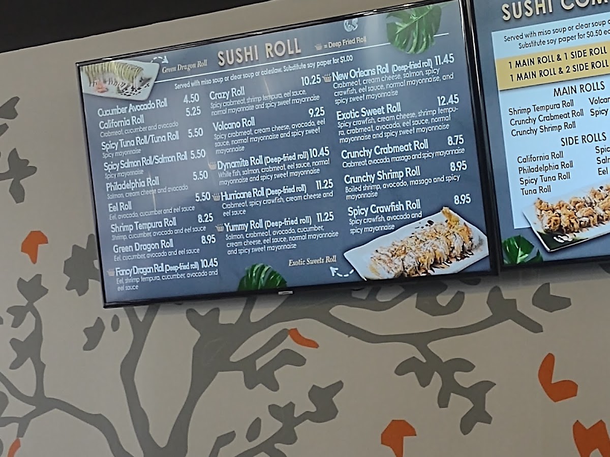 Spicy crawfish, cream cheese, shrimp tempura, crabmeat, avocado, eel sauce, normal mayonnaise, and spicy sweet mayonnaise.
